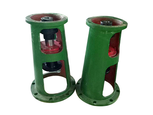 (2)無支點機加強。機加強本身無軸的支承點。攪拌軸是以TJQ型機架輸出軸的兩個支承軸承為受力支點,可用于傳遞小功率,不受或只受較小軸向負荷、攪拌不太強烈的攪拌裝置。攪拌軸與TJQ型機架的聯(lián)接用剛性聯(lián)軸器,特別是以JQ型夾殼聯(lián)軸器或SF型三分式聯(lián)軸器為佳。